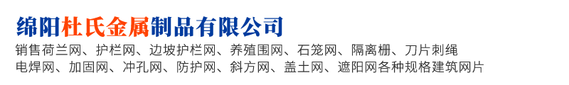 綿陽杜氏金屬制品有限公司專注篩網生產,是一家專業生產公路、鐵路、港口、學校、市政等荷蘭網、護欄網、邊坡護欄網、養殖圍網、石籠網、隔離柵、刀片刺繩、電焊網\加固網、沖孔網、防護網、斜方網、蓋土網、遮陽網各種規格建筑網片的廠家 防護網--用于高速公路、鐵路、機場、港口、碼頭、市政建設及養殖業防護用網。 勾花網--用于公園、綠地、停車場、告訴公路用網 鐵藝護欄網--用于住宅小區、企事業單位外圍護欄。 還可根據客戶要求加工定做各種規格材質的產品,保質保量高效的滿足客戶的各種需求...